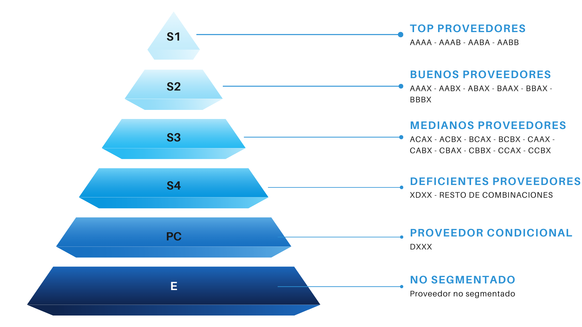 Con los datos recibidos, se tabula de acuerdo a la ponderación definida por Dimensión y Criterios. De acuerdo con el puntaje de cada Dimensión, si puede clasificar el proveedor con las letras A, B, C, D.